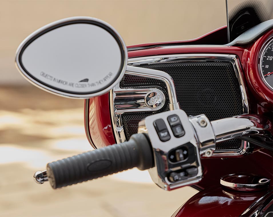 | SERIENAUSSTATTUNG | 7-Zoll-Touchscreen mit RIDE COMMAND inkl. Apple CarPlay-Integration; elektrische Windschutzscheibe; Highway Bars; Vinyl-Rogue-Sitz; Reifendrucküberwachung; fernbedienbare Hard Saddlebags; wählbare Fahrmodi; Deaktivierung des hinteren Zylinders; ABS; Tempomat; schlüssellose Zündung; 100-Watt-Audiosystem mit AM/FM, Bluetooth, USB, Smartphone-kompatiblem Eingang; 12-V-Ladeanschluss |