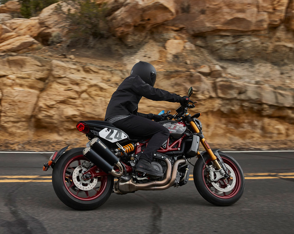 Egal ob Cruisen oder Beschleunigen, der kraftvolle Motor der FTR akzentuiert den Stil des Motorrads perfekt. Dreh die Lautsprecher voll auf!